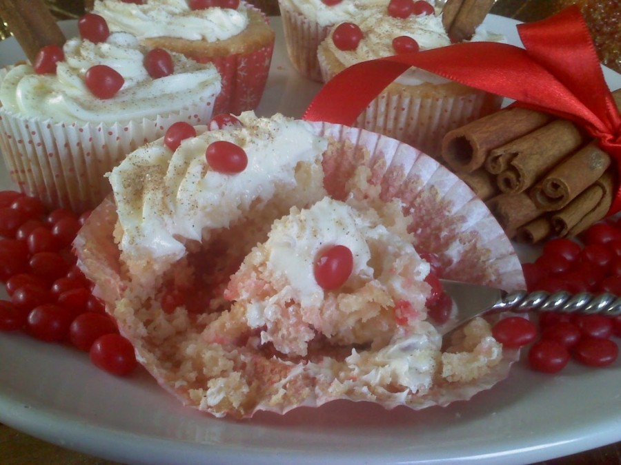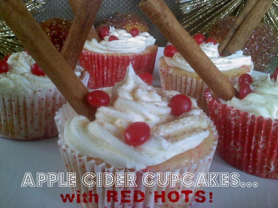 These cupcakes are filled with actual Apple Cider and are super moist! The Red Hots melt into the batter creating the perfect marriage of delicious cinnamon-spice and scrumptious cake!