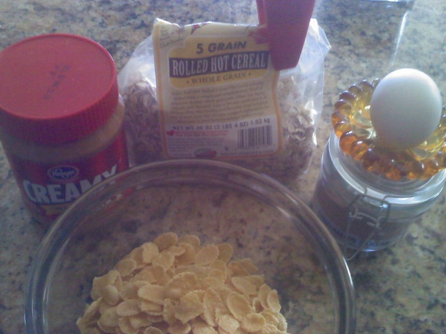In a medium bowl combine all of the ingredients, other than the honey & the crushed corn flakes..and mix well!