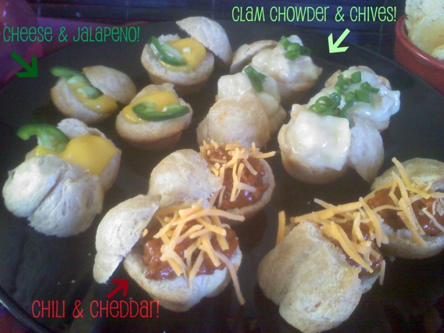 I shutter to think that I actually considered making my own dough and soup for these, until I snapped out of it and realized that regular Pillsbury canned biscuit dough and some canned soup would accomplish the same thing and save me valuable snacking minutes, that I can use up later! 🙂  Score major points with your crowd and make a batch of these for your nex game day or movie night!