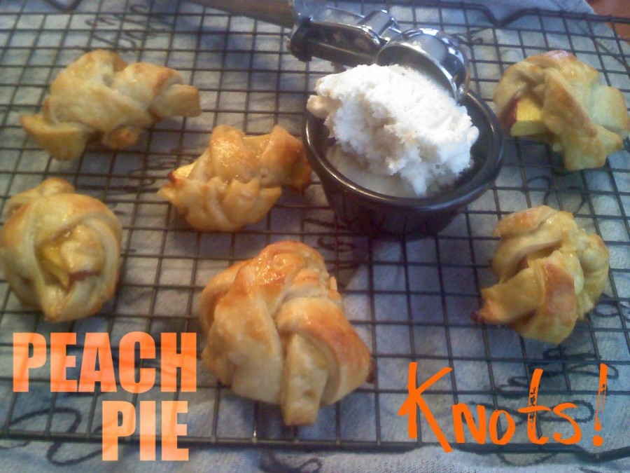 I figured Garlic has its knots, why can’t peach pie..lol?! And they sure did live up to all the expectations of a delicious knotted treat! The crispy & flaky pie crust holding on tightly to a sweet, jam glazed, warm and juicy peach slice is ahh-mazing! Not to mention that they’re the perfect size, for enjoying a bunch few and not feeling guilty! They’re so small that you’ll have calories left in your “bank” to dip them into some cold ice cream…yeah, that’s right! 🙂