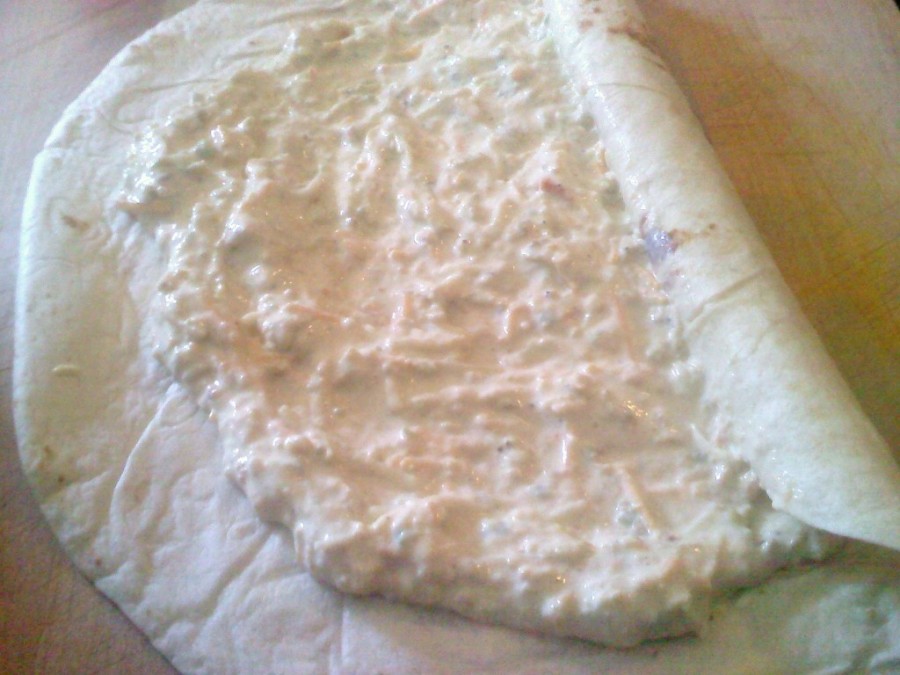 Spread the filling onto a tortilla, leaving about a 1″ border around the edge and roll her up!