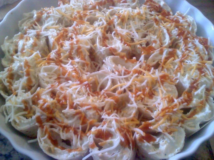 Sprinkle the pinwheels with the reserved shredded cheese..