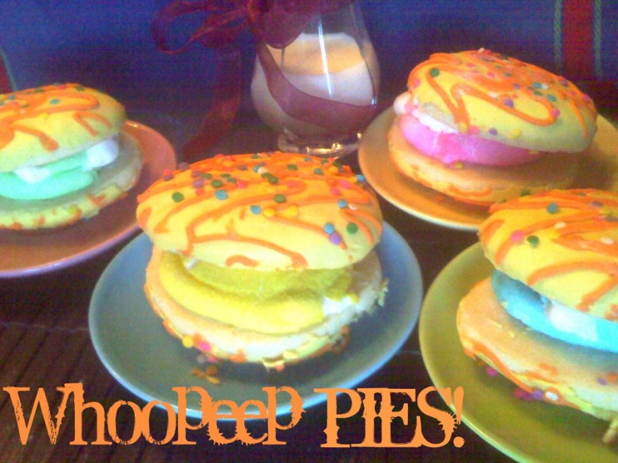 The only time Peeps bring me any joy is when I’m watching them melt, burn, smush or char..haha! 🙂 So for that reason I buy them! Although, I must say that turning them into a Whoopie Whoopeep Pies has rekindled some love for the poor Peeps! When in doubt smush ’em! 🙂