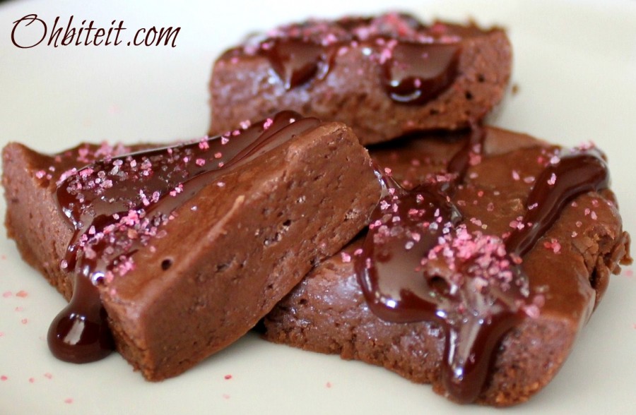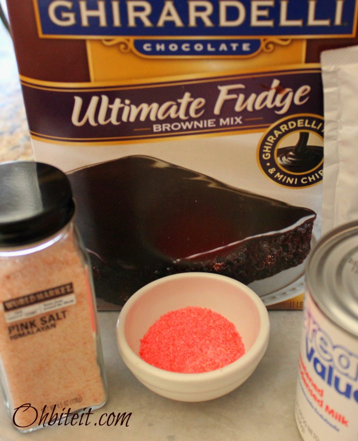 When I saw this beauty sitting on the store shelf all pink and pretty..there was no stopping me! it’s a darn good thing that it was only $4.99, or who knows how broke I’d be right now..lol! (I added one drop of pink food coloring to the salt that I used for garnish..just for an extra vibrant boost of pinkness against the fudge..it worked great)
