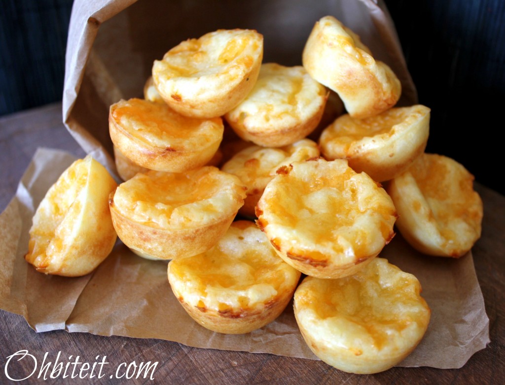 Even though these babies don’t get super poppin’ high, they’re still SO fluffy, moist, chewy & cheesy. They make the perfect pop in your mouth one-biter! 🙂