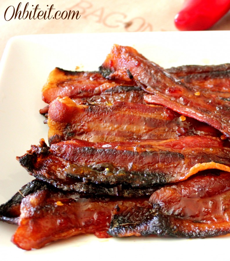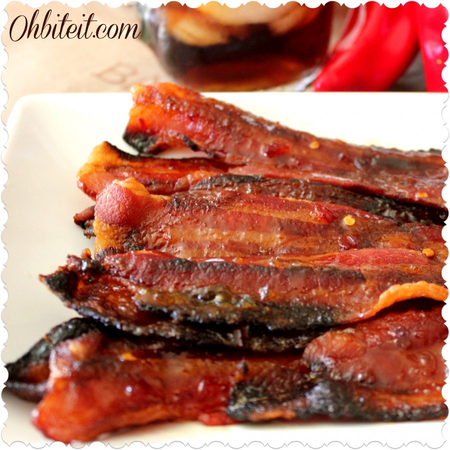 Not only could I devour at least 4 pounds 2 pieces of it as-is, but I drift off to fantasy food dreamland when I imagine it on a jazzed up BLT, or all of the amazing goodies that can be lovingly wrapped up in this sweet & spicy bacon treat!
