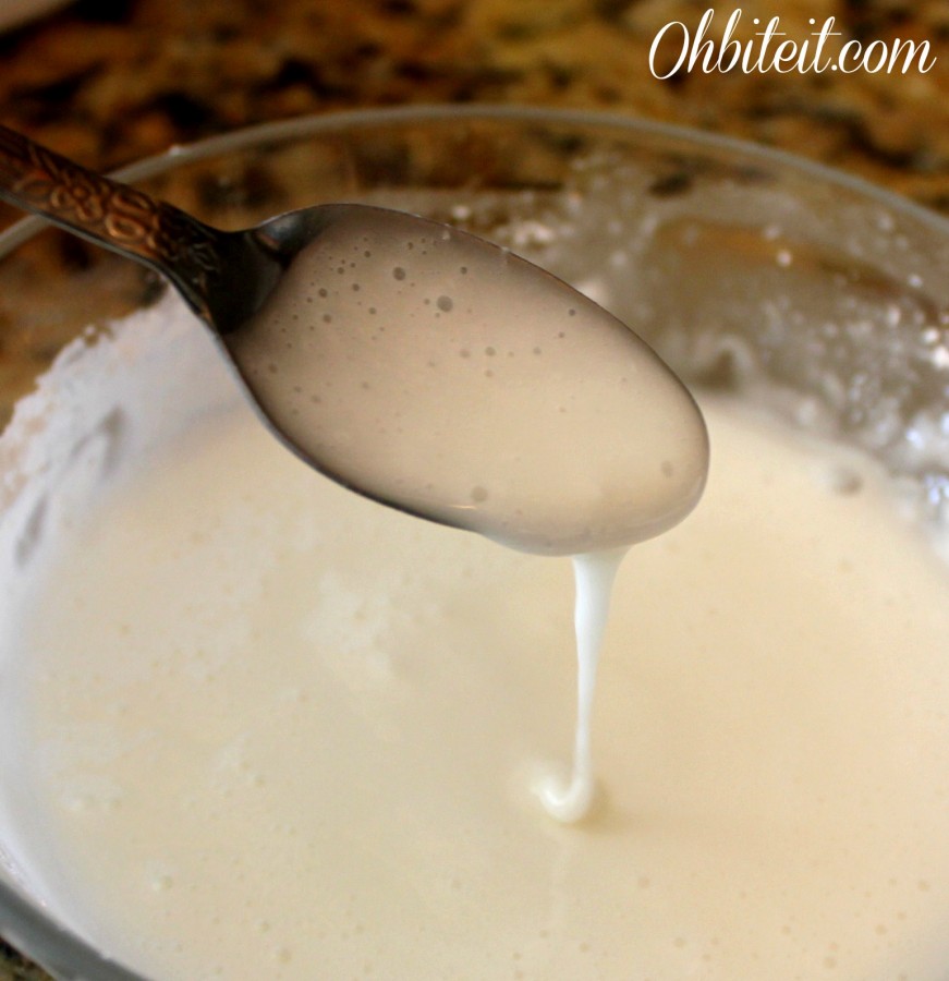 Prepare the glaze simply by stirring in some milk into the powdered sugar..until it’s thick! Adjust the ratios as necessary!
