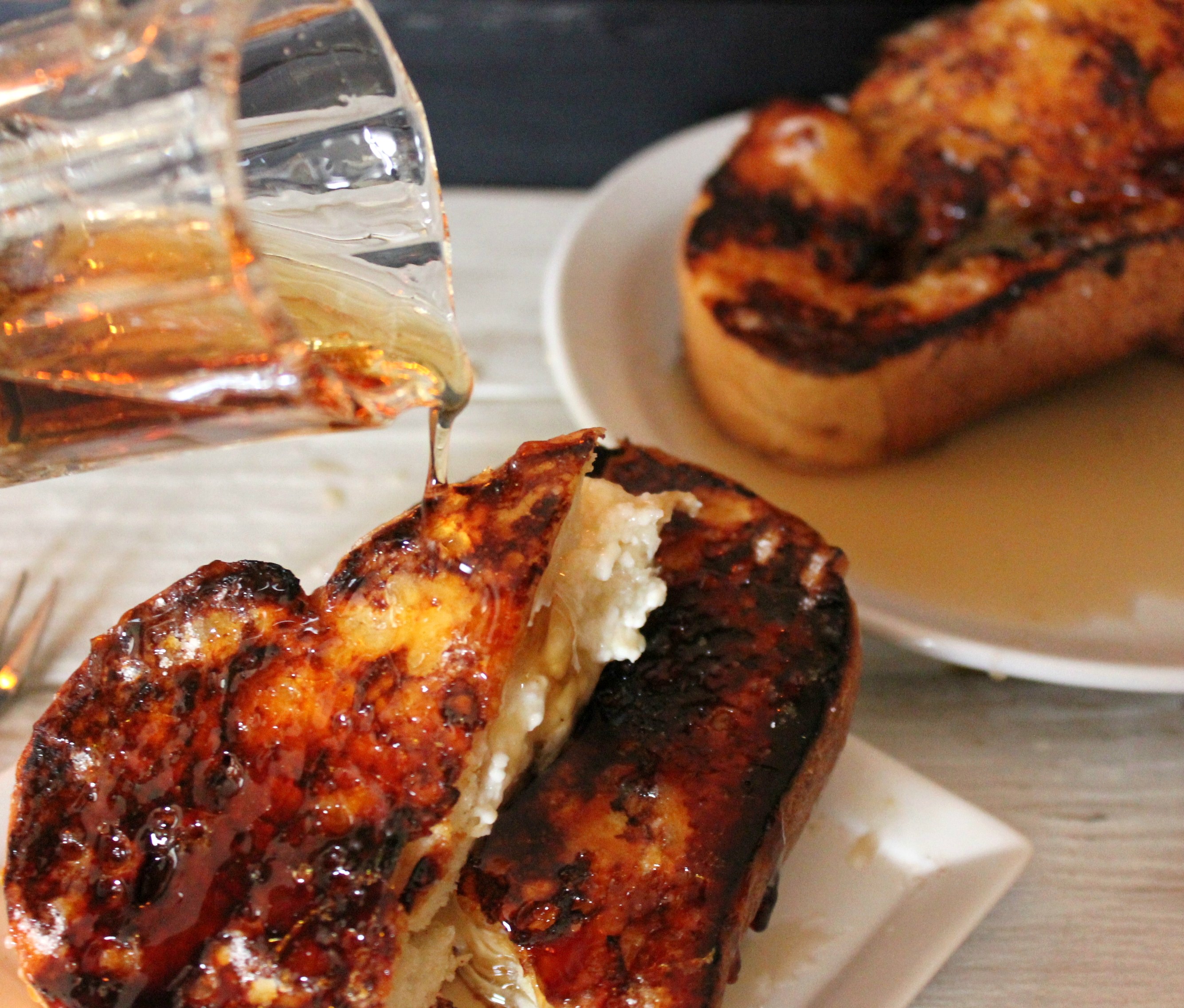 This French Toast is beyond crazy good! Crack through its crispy, burnt Sugar Shell and you’re sinking into a warm, tender custardy bread, that just so happens to be over-stuffed with sweetened Cream Cheese.