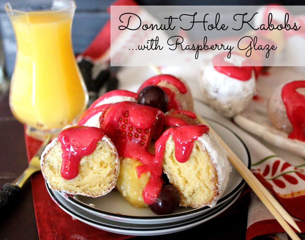 These succulent skewers are super easy, fun & impressive, offering up the perfect balance of Fruit and Donut! Serve them up with a generous drizzle of sweet and pretty Raspberry Glaze or even a nice, thick squirt of Maple Syrup!