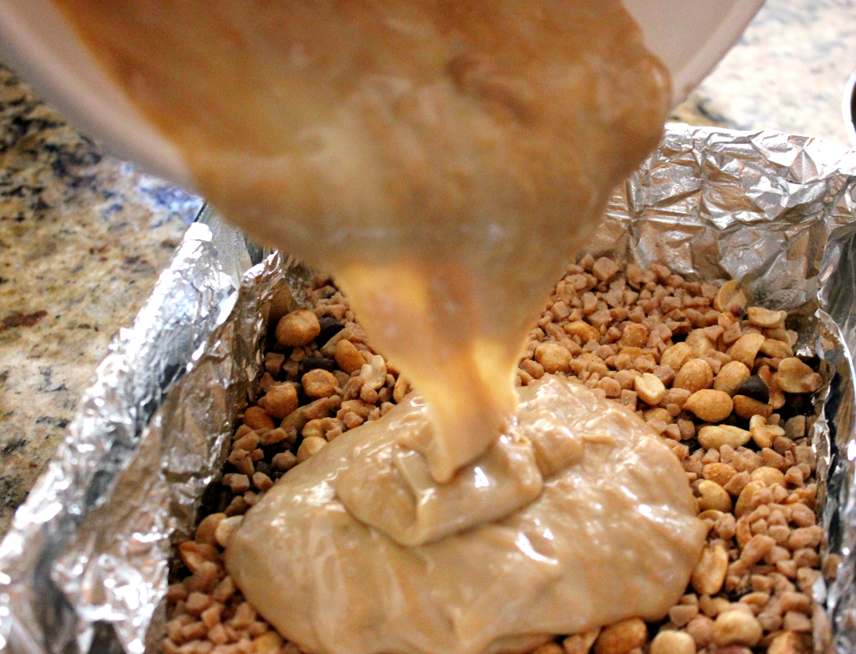 Now pour the Peanut Butter mix evenly over the top…
