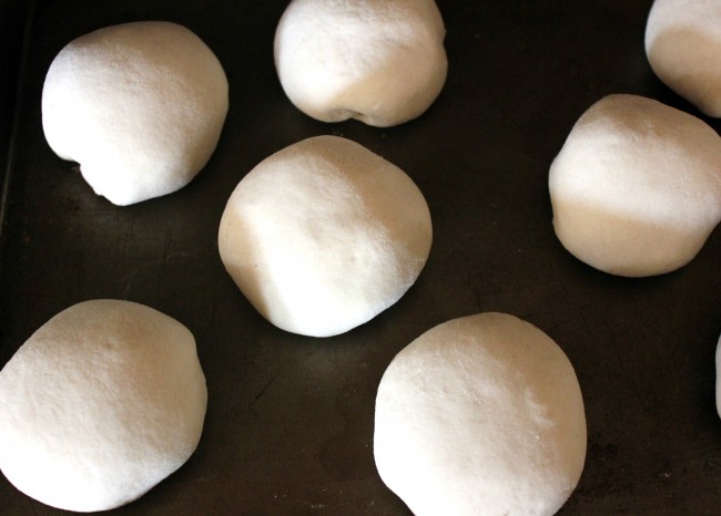 Roll them up SUPER tight and place them seam-side down onto a baking sheet. Bake them at 350 degrees for approx. 12 minutes, or until they’re slightly golden and puffy…