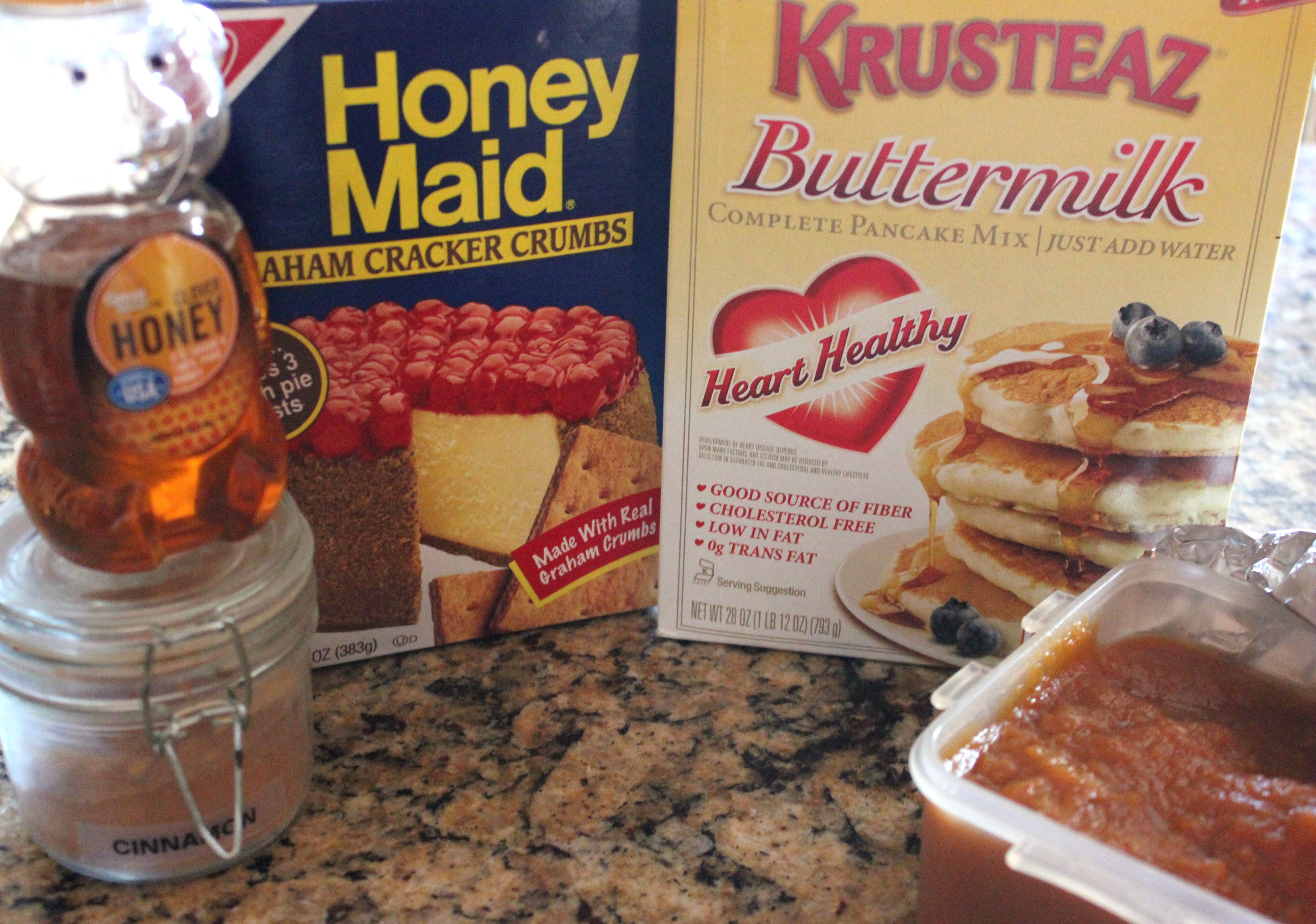 Mix up your pancake batter as usual, add in the Pumpkin Pie Filling and Graham Cracker Crumbs…