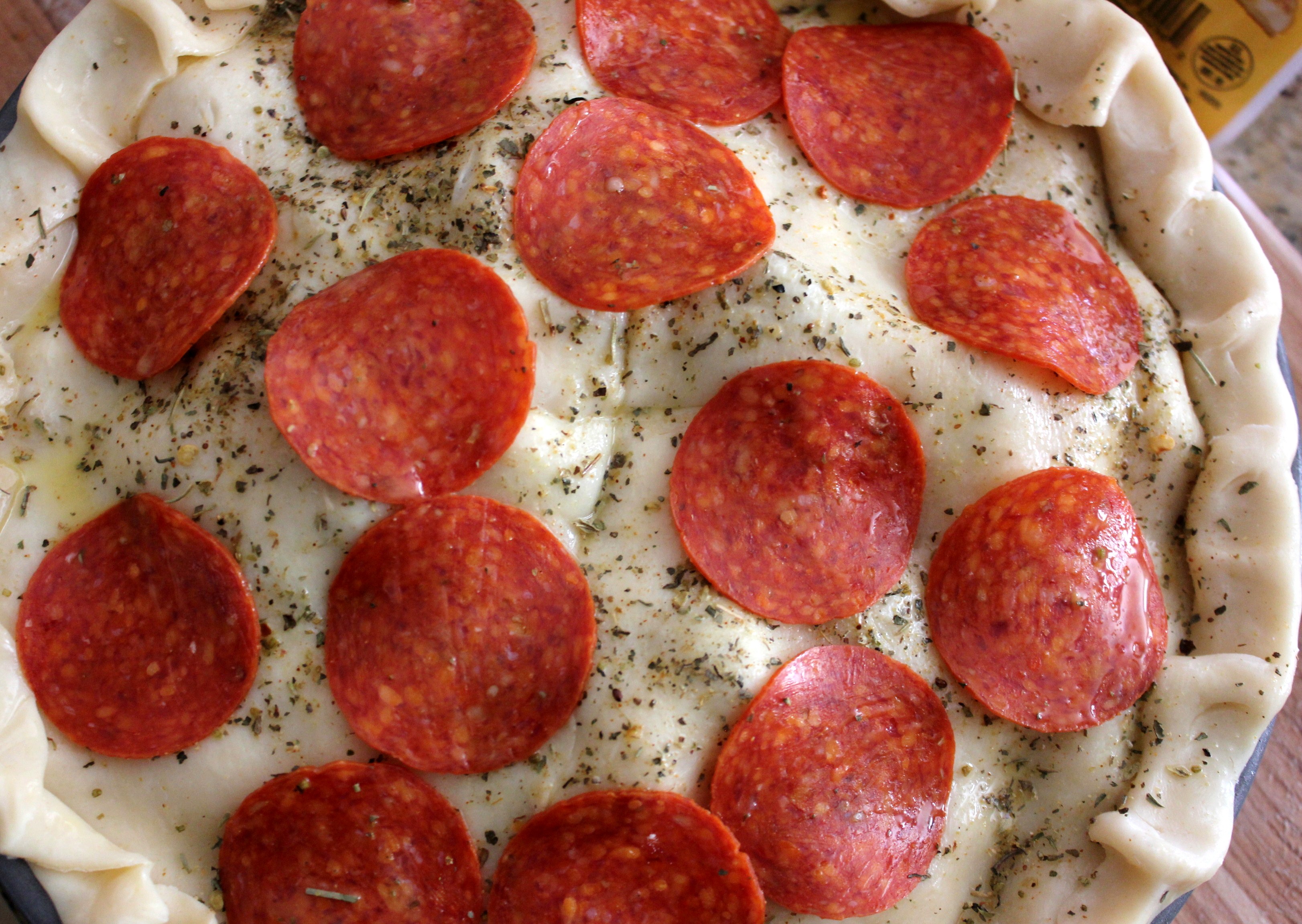 Sprinkle it with Oregano, and top it with as much Pepperoni as you’d like…