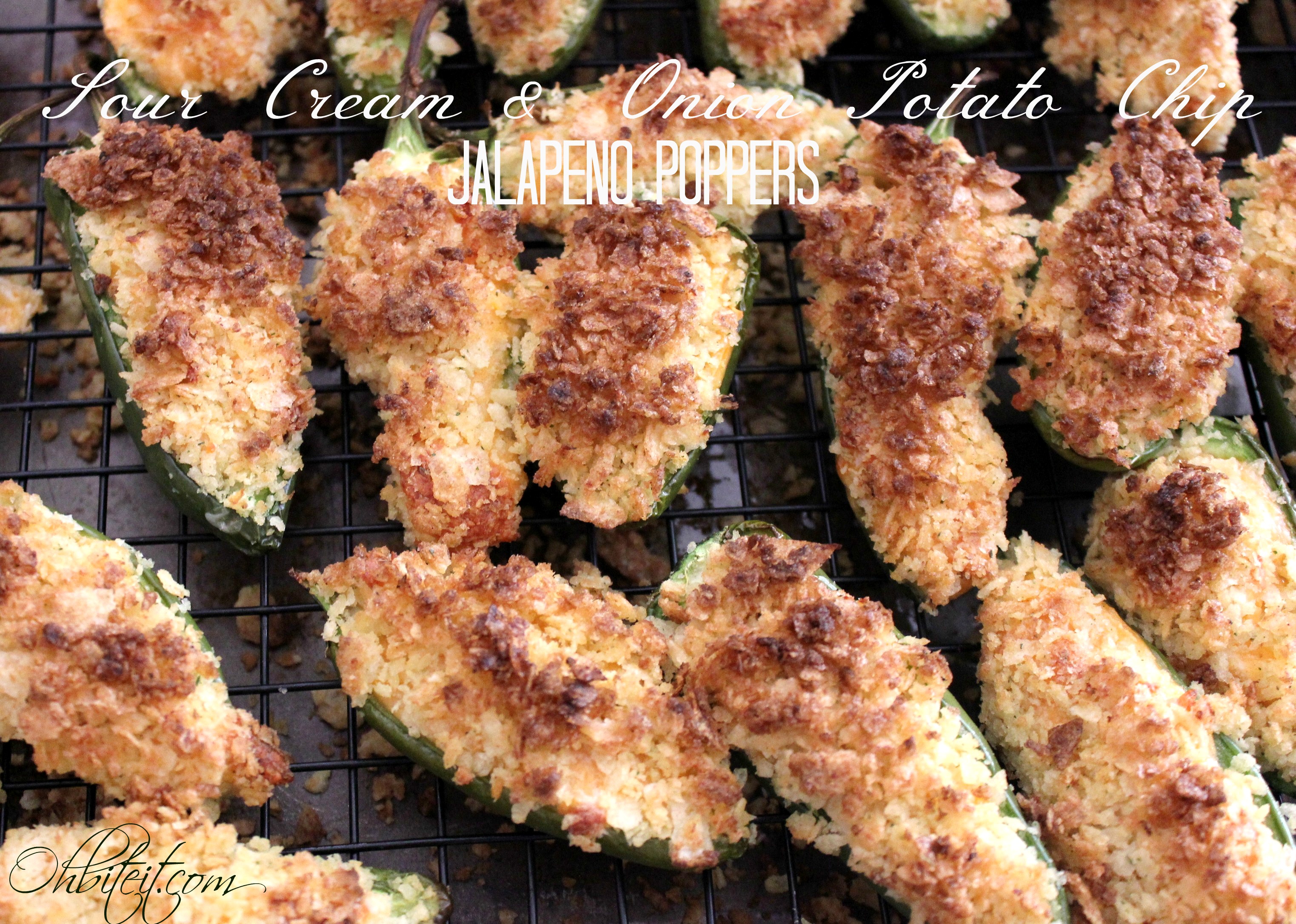 The Sour Cream & Onion Chips add the most amazing crunch and flavor to the creamy and cheesy Poppers. Crunchy~Cheesy~Salty~Spicy…the perfect snack! These will be a game day favorite, even if your idea of a “game” is just laying on the couch…all day!