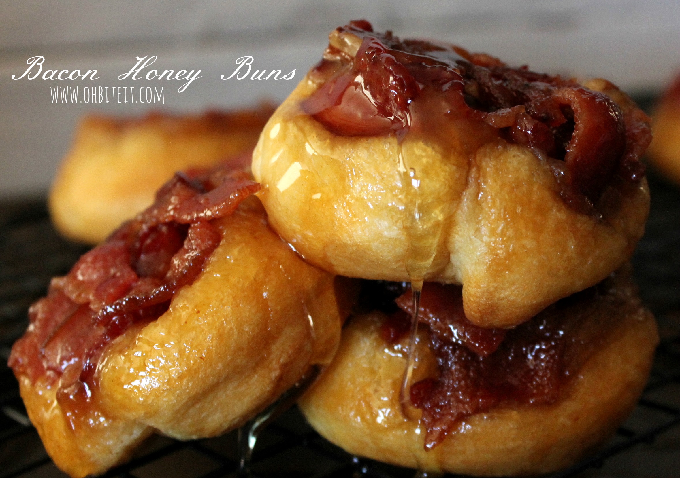 If you could take all that’s delectable in this world and combine it into one fluffy, sticky & sweet treat that’s topped off with the Crown Jewel of all deliciousness~yep…BACON, it would look and taste just like these Bacon Honey Buns!