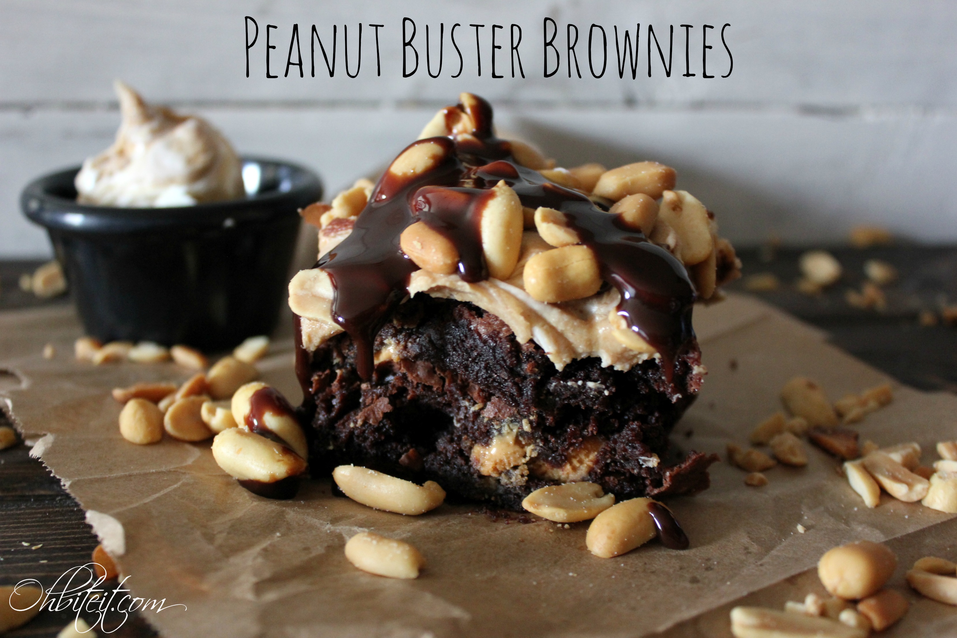 It’s just too cold right now around here for ice cream, so I substituted it with the next best thing..Brownies! Yep…Ooey-gooey, Peanut Butter filled Brownies, slathered with a layer of Cream Cheese & Peanut Butter frosting & totally loaded with fresh salty Peanuts and a cascade of Chocolate Sauce! O`M`G!