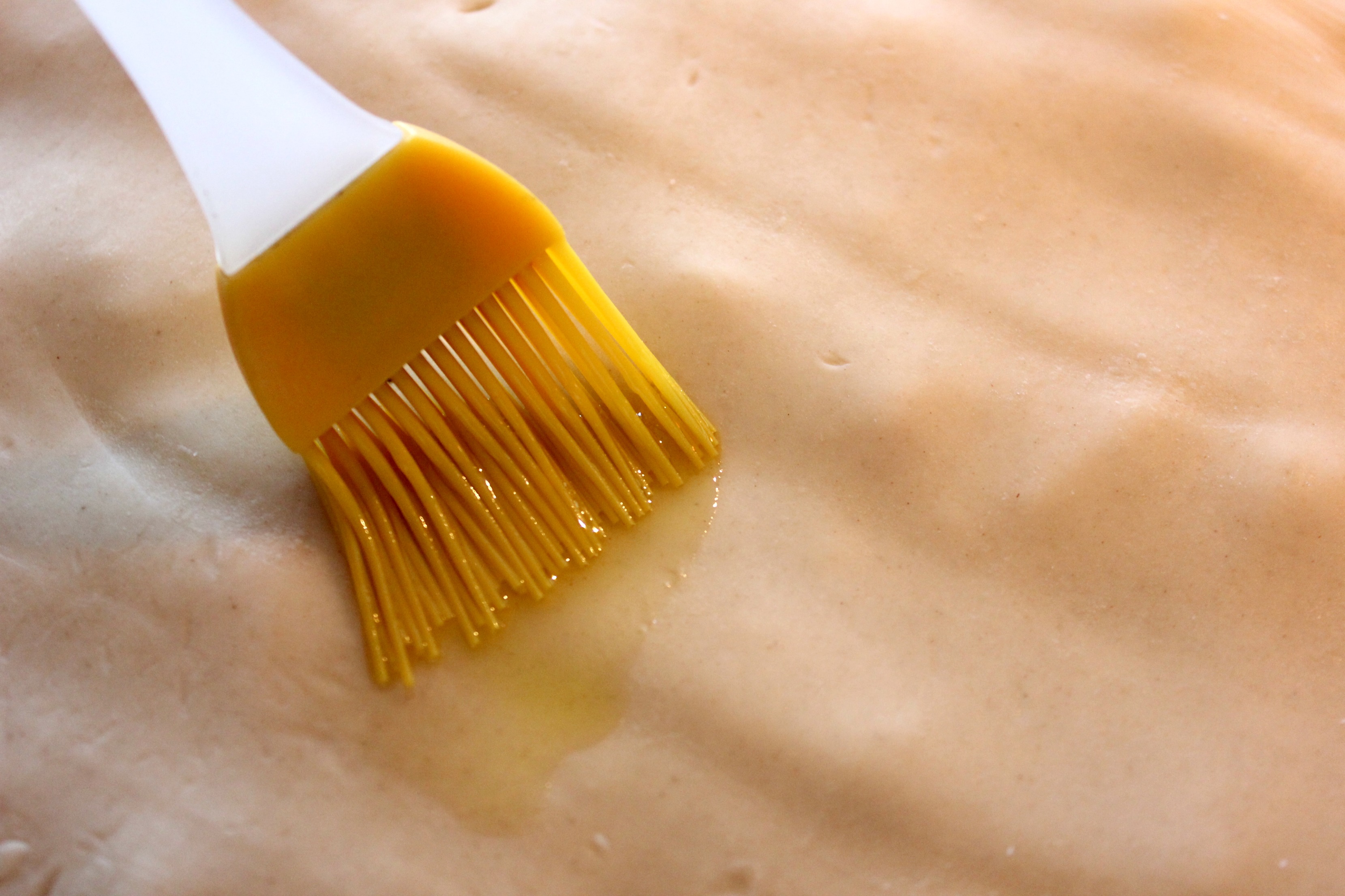 Put on the top crust and brush on the Olive Oil, Parmesan Cheese, and some Oregano…