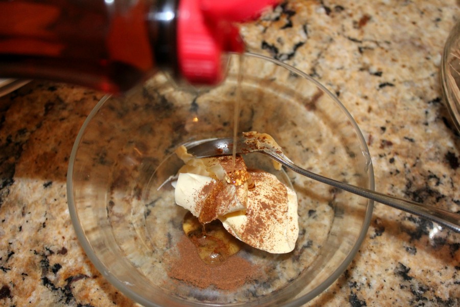 While it’s cooling, mix up the Maple Syrup Cinnamon Butter…2 tbsp. Butter, a splash of syrup and a dash of cinnamon..that’s it!