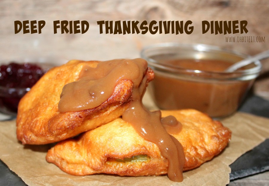 Talk about a hand-pie gone wild, these totally tasty turkey treats are one of a kind, and not even a shadow of what they were just a mere day before! Nope~ these babies take your entire turkey dinner and snuggle it up inside a deep fried, buttery and flaky crescent..THEN the whole thing gets plunged deeply into a bowl of warm gravy~~ and then, it becomes one with your soul..lol!