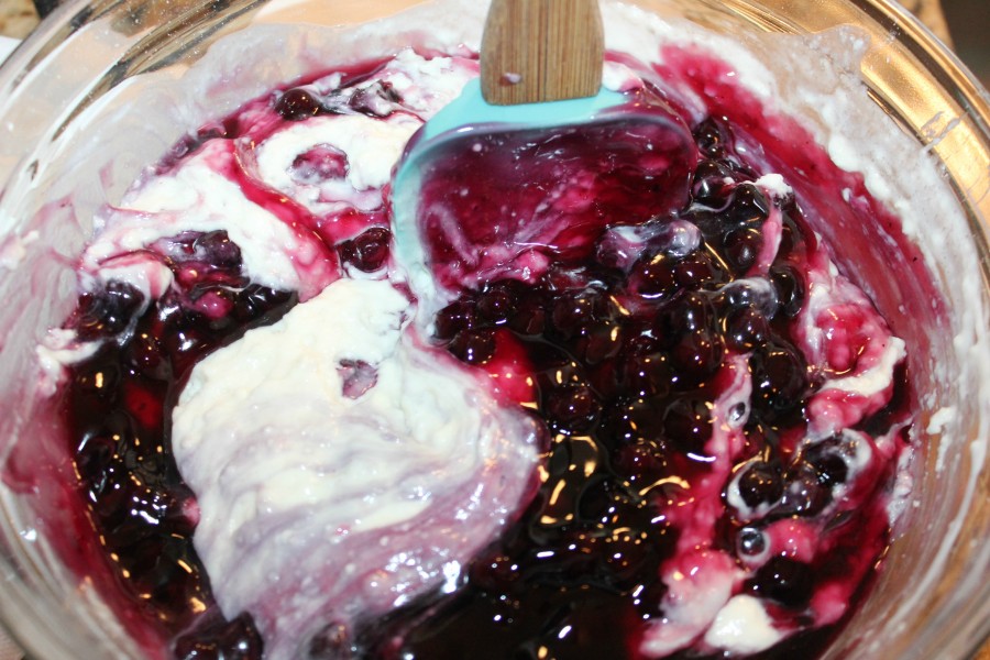Now stir in 3/4 of the can of Lucky Leaf Blueberry /FillingTopping..reserving the remainder for topping the waffles…