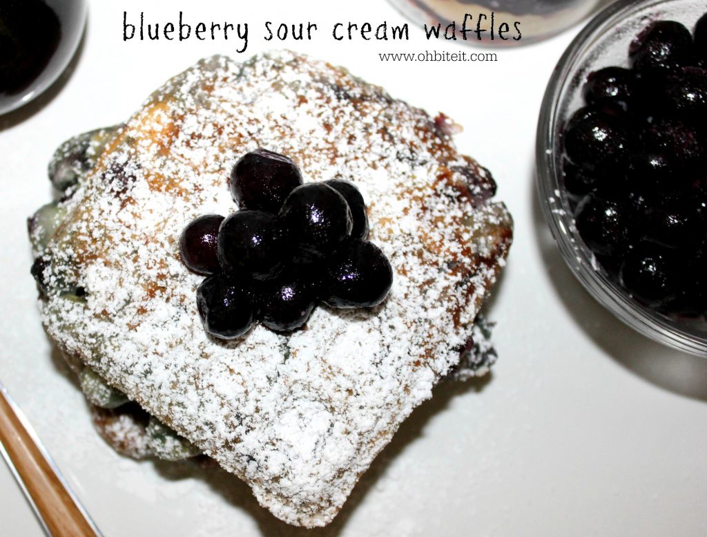 Each waffle is loaded with blueberries, and sweet, rich, Blueberry Lucky Leaf Fruit Topping.. all balanced out with the subtle, rich, and savory flavors of sour cream. The sour cream takes these babies over the top and will make you the MVP of Mom’s Day!