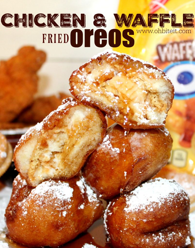 We’ve got the OREO, all warm and snuggling some super succulent bites of fried chicken, lovingly smushed and coated in waffle batter, and then deep fried to golden, puffed perfection. SO GOOD!