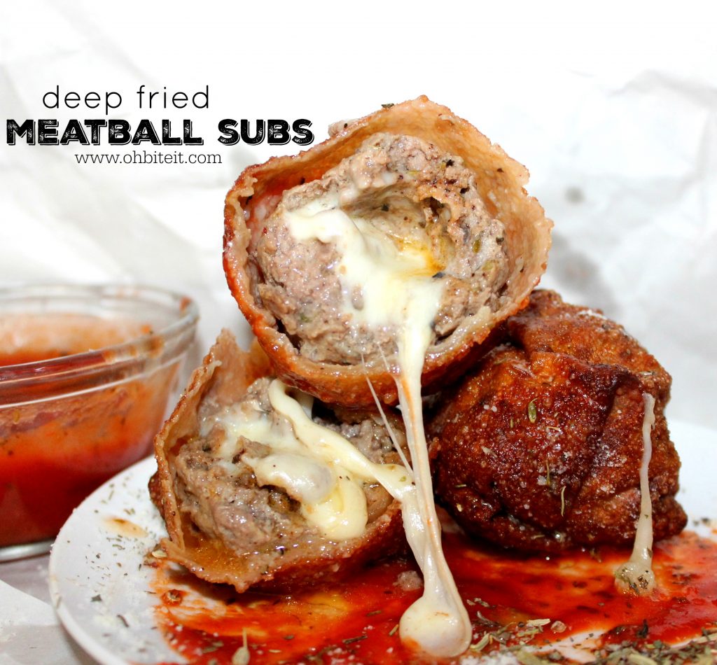 Yep, you’re looking at a delicious, whimsical, easy to make..easier to eat, meatball sub! Perfectly seasoned, juicy, tender beef that has been loving stuffed with provolone, and then wrapped and fried to crispy, crunchy perfection.