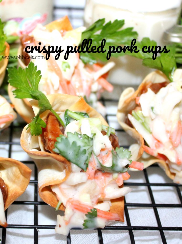 This time I created adorable, easy-to-eat crispy cups, filled with succulent pulled pork, and topped with cool refreshing coleslaw, mixed with the amazingly creamy and decadent Litehouse Coleslaw Dressing.