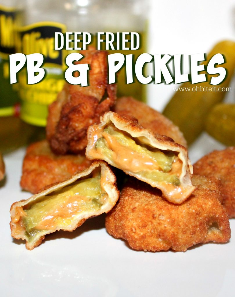 I’ve made that a little easier for myself us here by taking all things PB & Pickle and frying it up until it tastes good..haha. And when I say it tastes good.. I’m not joking. The sweet and savory, crispy, deep fried version of this mash-up is nothing short of yummy. I cant tell you why, I can’t explain it.. and I’d never admit it to anyone but you.. (SHhh).. it’s just yummy.