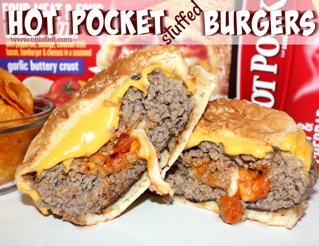 That being said, this time I thought it would be deliciously fun to stuff a burger with one of our all-time favorite go-to snacks.. HOT POCKETS! I mean, all the work is done for me.. they’re cheesy, they’re tasty, they’re already filled and ready to become the best burger stuffing EVER! SO BOOM!