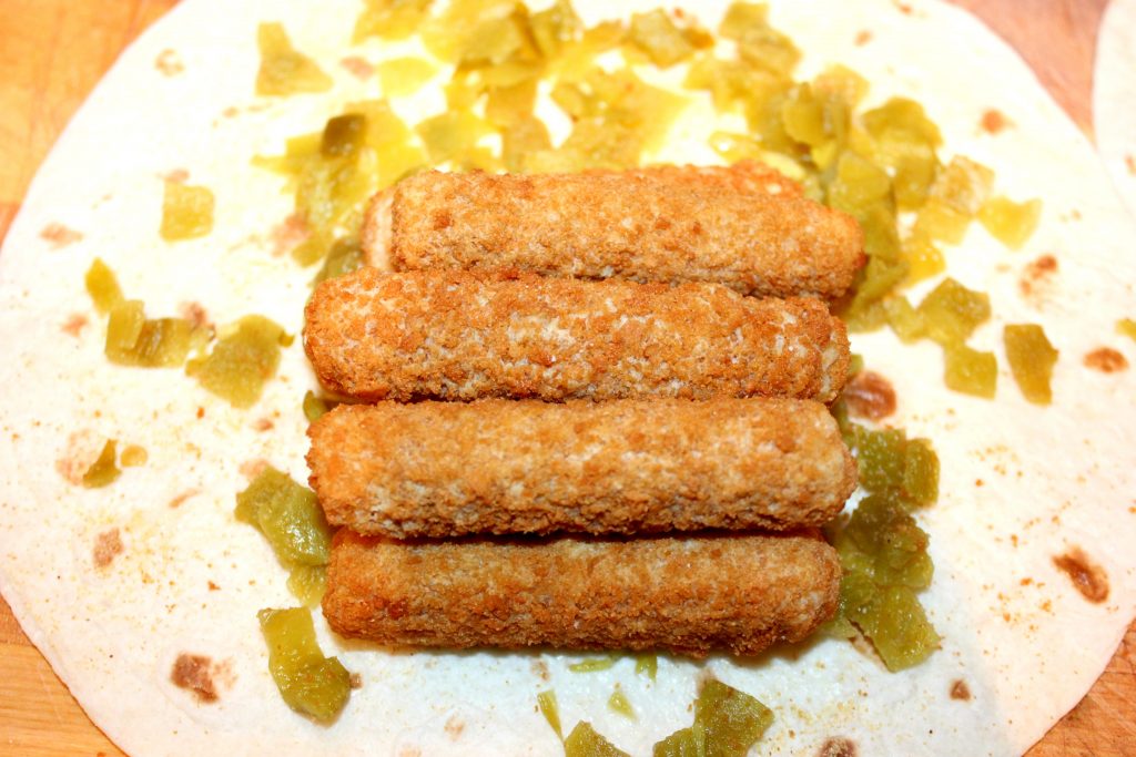 These don’t need all that other burrito stuff, nope.. each crispy burrito is flavor filled with seasoned fried cheese sticks .. all balanced with the sassy spice of green chiles.