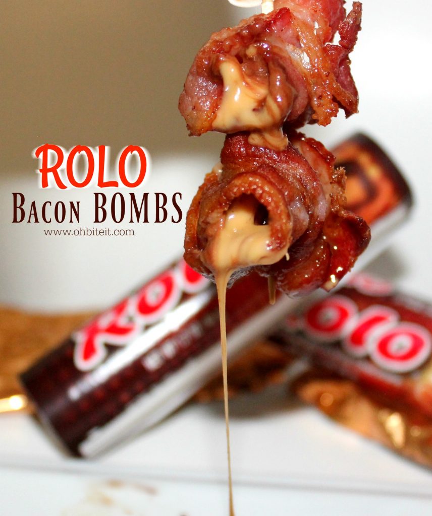 The perfect combo of salty, sweet, crispy, chewy, chocolaty, warm, melty-caramely goodness known to mankind..lol. Each little ROLO-filled bacon bomb, sends your senses soaring into the stratosphere… and beyond.