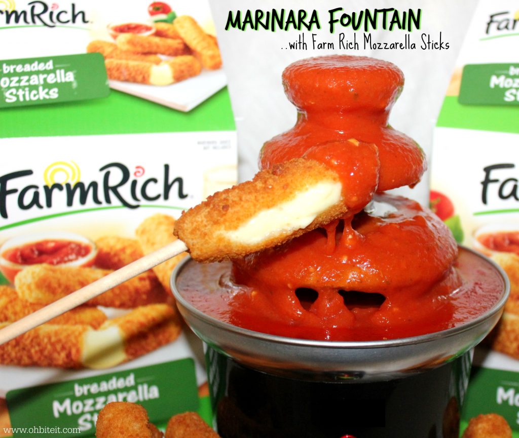 Thanks to Farm Rich, I was able to create the ultimate snack for cheering on your favorite college team. I’m talking about a Marinara Mozzarella Stick Fountain – warm, flowing cascades of saucy Marinara, just begging to blanket those beautiful melty mozzarella babies!