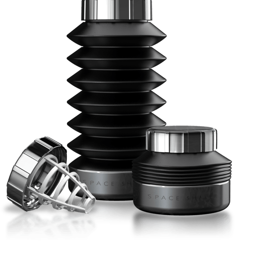 SPACE SHAKER is a portable high-end shaker bottle that expands, so you can bring your powdered nutrition with you. No more big bottles in your bag, no more pre-mixed drinks, no more protein degradation, no more clumps. Pre-loaded recyclable version available by subscription to our Space Shaker CLUB.