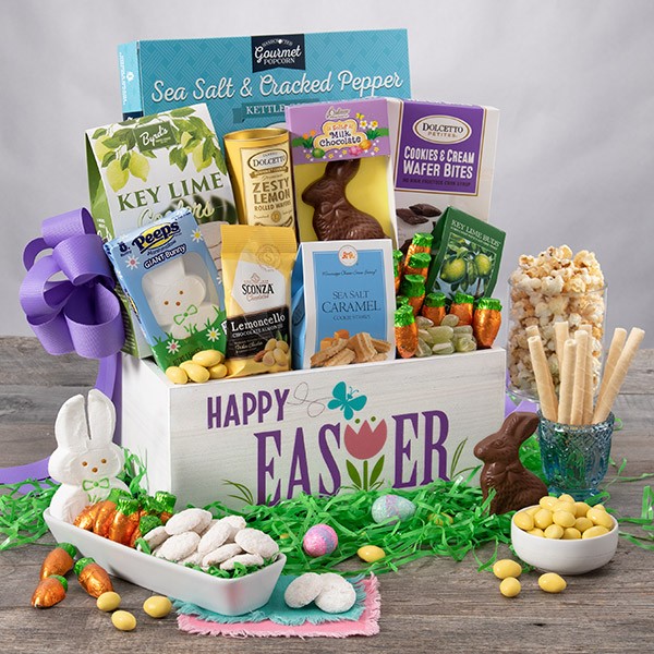 Sure, we at GourmetGiftBaskets.comlove Easter for its promise of incoming warm weather and fragrant new blooms, but most importantly, for the guarantee of these traditional sweets! With exquisite delights, like a gooey marshmallow Peep, lemoncello chocolate almonds, and delicately crispy cookies, this beautiful Easter themed gift crate is sure to make Easter morning one they’ll never forget.