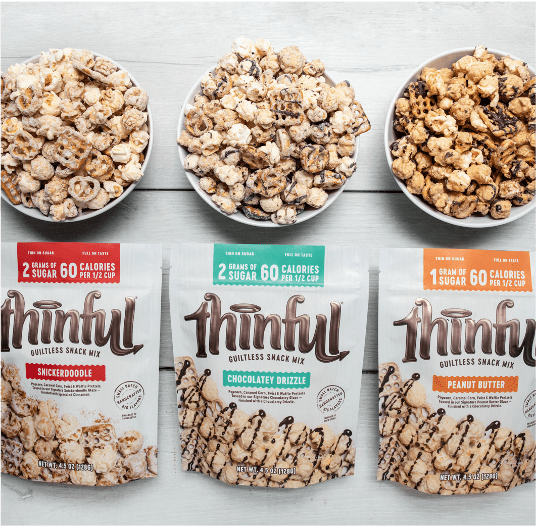 Thinful grew from the simple desire to make healthier snacks that let people indulge without guilt. Handcrafted in small batches, we toss our signature sweet glaze over a mix of buttery popcorn, decadent caramel corn, and salty pretzels. Each flavor is finished with either a luscious drizzle or a delectable sprinkled topping – making every bag of Thinful sinfully delicious. Now, craveable indulgence and low-sugar healthfulness go hand in hand. Or rather, hand in bag.